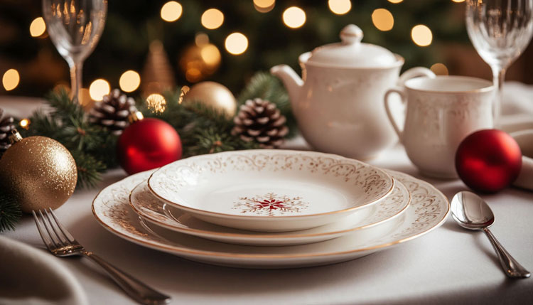 - Стиль и тематика: Современные новогодние столовые наборы — это не только традиционные снежинки и олени. Вы можете найти изящные варианты в скандинавском стиле, лаконичные — в красно-золотой гамме или милые — с животворящими оленями. Это позволяет подобрать набор под интерьер и вкусы хозяйки.