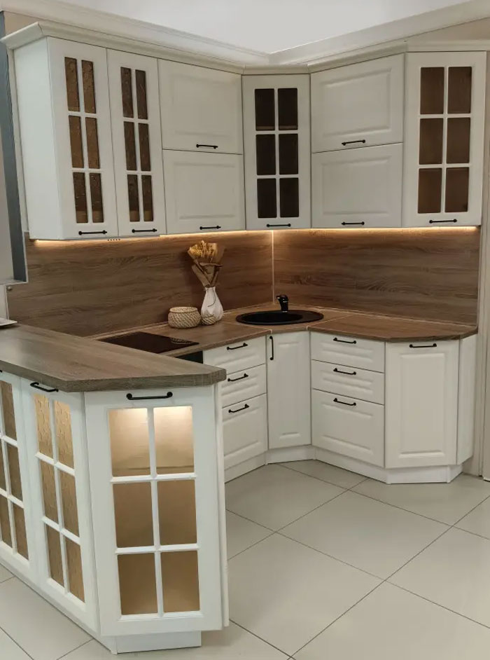 Нижние шкафы и ящики лучше сразу отдать под пластиковую и детскую посуду, лёгкие кастрюли, контейнеры и текстиль. Стекло, ножи, тёрки и бытовую химию удобнее держать в верхних шкафах или в высоком пенале. Открытые полки внизу часто провоцируют ребёнка залезать и стаскивать предметы, поэтому в семьях с детьми лучше работают закрытые фасады.В повседневной жизни помогают простые правила:
