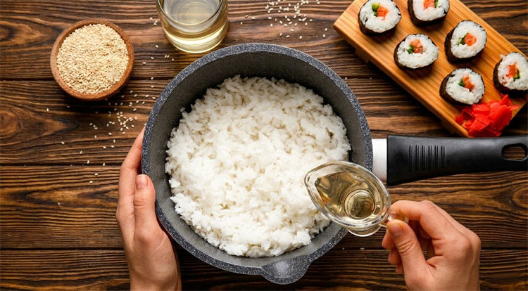 Белый рис сам по себе пресноват. Тот самый аутентичный вкус роллов достигается за счет специальной заправки. Готовить ее нужно, пока крупа томится под крышкой.Для объема готового риса (около 500 г) вам понадобится: