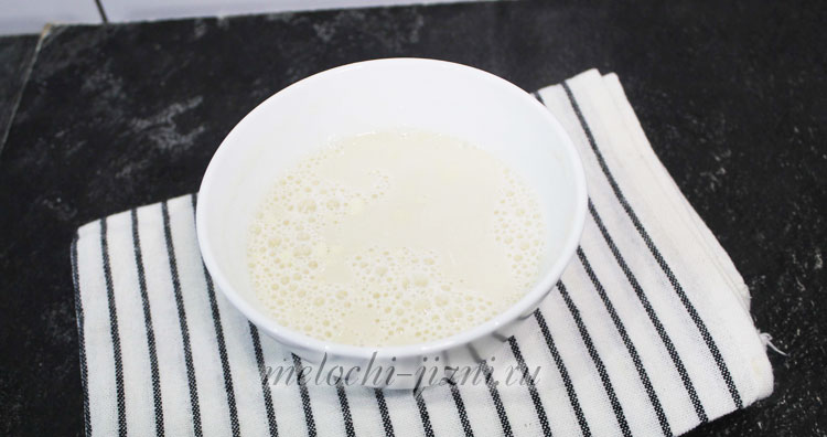 1. Приготовьте опару для этого в миску налейте теплое молоко, положите дрожжи, добавьте 1 чайную ложку сахара и немного муки, все перемешайте, оставьте на 20 минут.