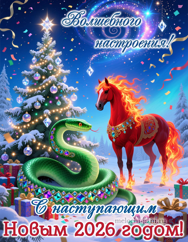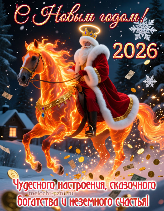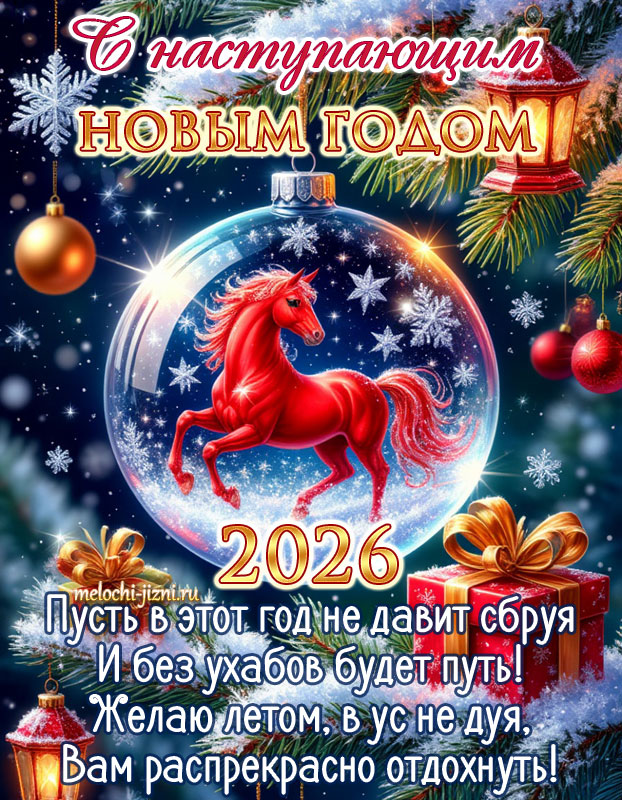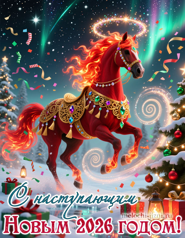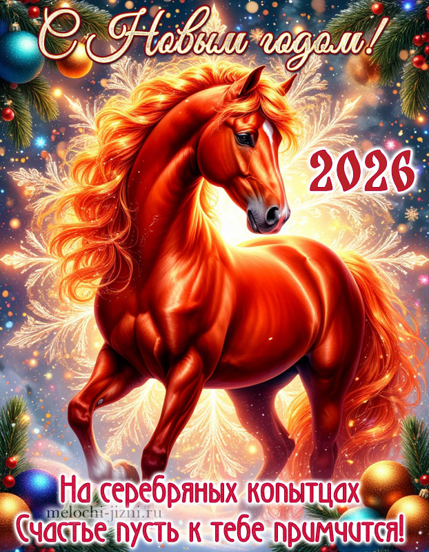 Окунитесь в атмосферу волшебства 2026 года — года Огненной Лошади! На этой странице вас ждут авторские онлайн-открытки и картинки с душевными и весёлыми поздравлениями. Найдите идеальную открытку, чтобы отправить тёплые слова родным, порадовать друзей или поделиться праздничным настроением в соцсетях. Пусть ваши пожелания здоровья, счастья и гармонии обретут красивое воплощение и поскачут к адресатам на быстрых конях удачи!